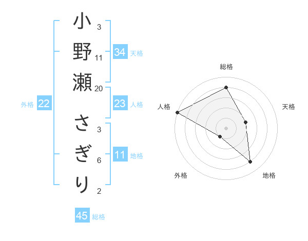 小野瀬 さぎりさんを姓名の画数から五運を鑑定