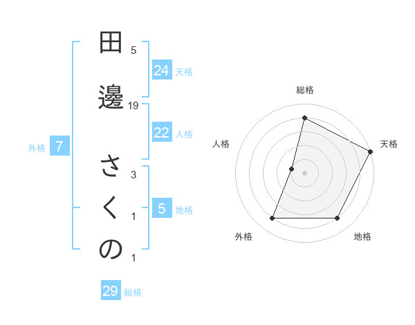 田邊 さくのさんを姓名の画数から五運を鑑定