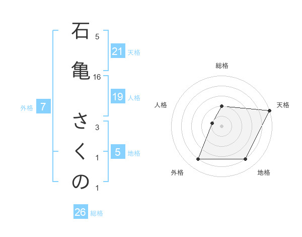 石亀 さくのさんを姓名の画数から五運を鑑定