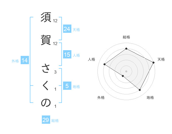 須賀 さくのさんを姓名の画数から五運を鑑定