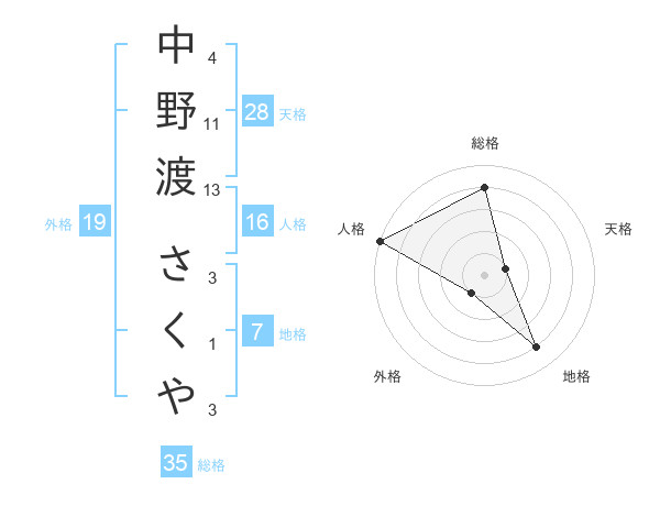 中野渡 さくやさんを姓名の画数から五運を鑑定