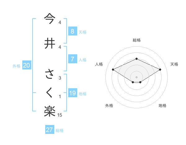 今井 さく楽さんを姓名の画数から五運を鑑定