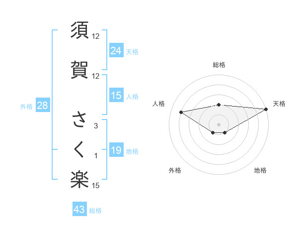 須賀 さく楽さんを姓名の画数から五運を鑑定