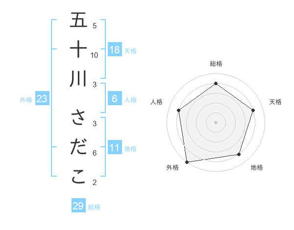 五十川 さだこさんを姓名の画数から五運を鑑定