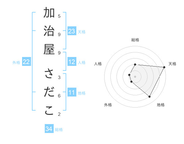 加治屋 さだこさんを姓名の画数から五運を鑑定