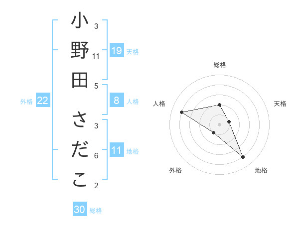 小野田 さだこさんを姓名の画数から五運を鑑定
