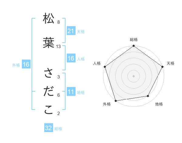 松葉 さだこさんを姓名の画数から五運を鑑定