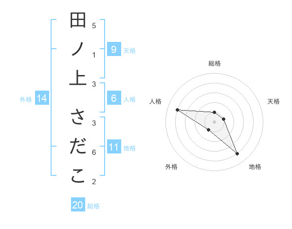 田ノ上 さだこさんを姓名の画数から五運を鑑定