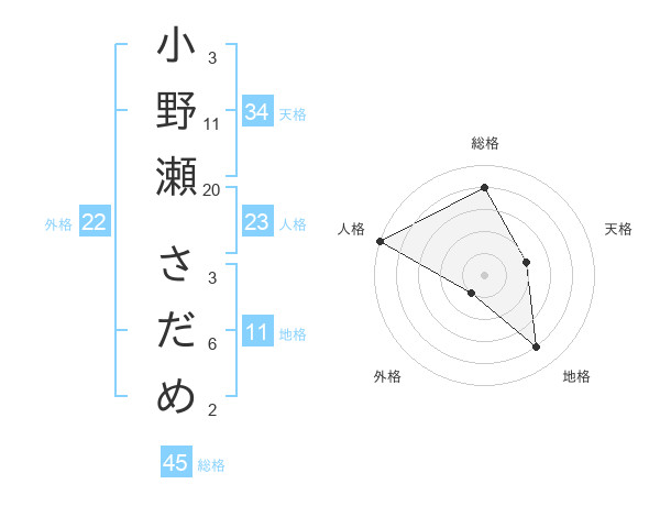 小野瀬 さだめさんを姓名の画数から五運を鑑定