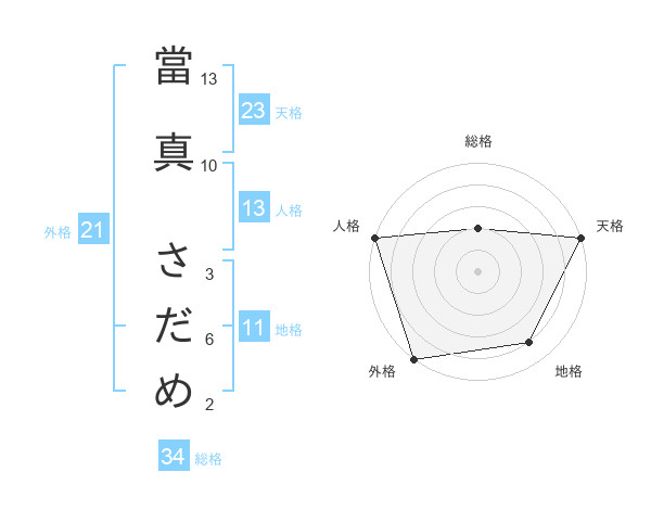 當真 さだめさんの総格は34画の2点!