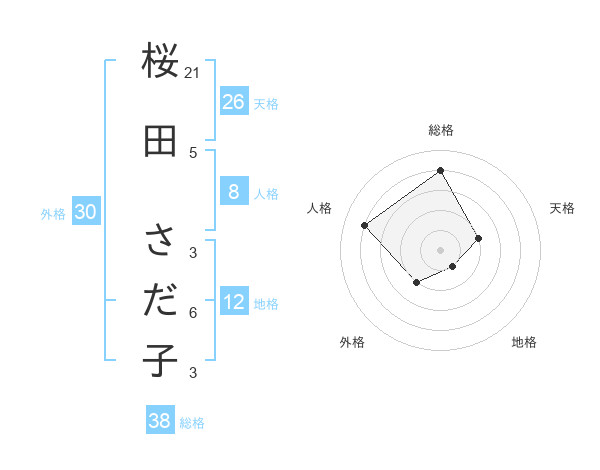 桜田 さだ子さんの総格は38画の4点!