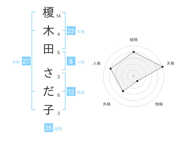 榎木田 さだ子さんを姓名の画数から五運を鑑定