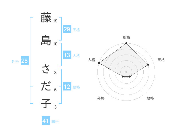 藤島 さだ子さんを姓名の画数から五運を鑑定