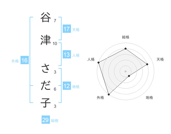 谷津 さだ子さんを姓名の画数から五運を鑑定