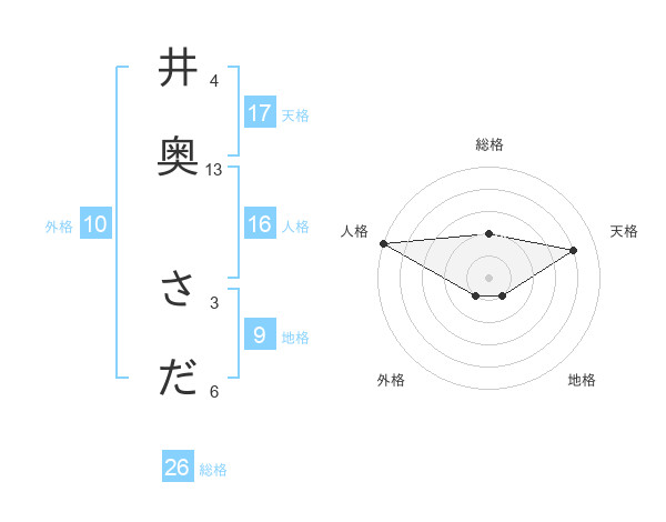 井奥 さださんの総格は26画の2点!