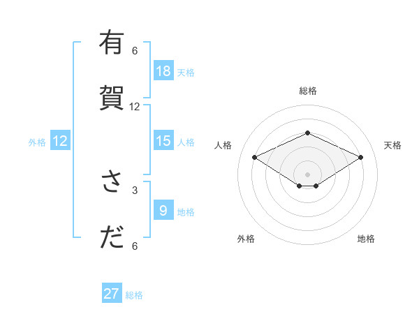 有賀 さださんの総格は27画の3点!
