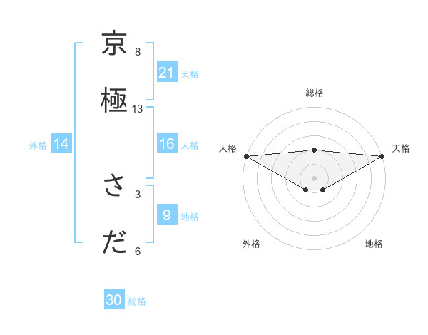 京極 さださんの総格は30画の2点!