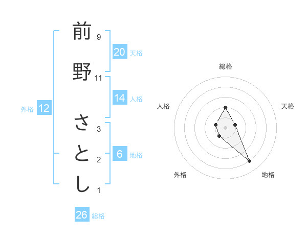 占い結果は姓名判断である以上、良い場合も悪い場合もありますが、決してお名前を誹謗中傷するものでなく、画数の自動計算によって得られたものです。また、本サイトの検索によって得られた鑑定結果で、第三者を誹謗中傷したり名誉を棄損するような行為を禁じます。