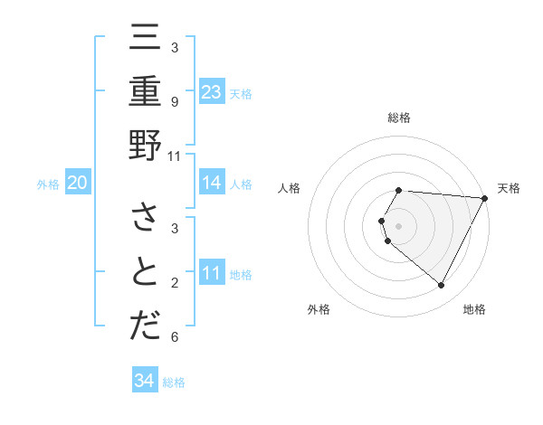 三重野 さとださんの天格は23画の5点!