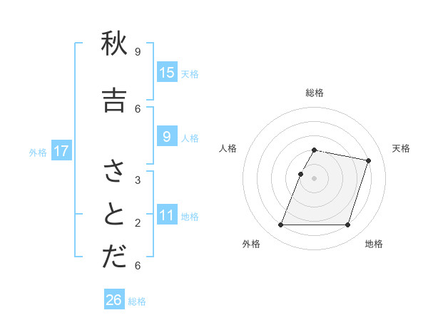 秋吉 さとださんを姓名の画数から五運を鑑定