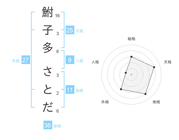鮒子多 さとださんを姓名の画数から五運を鑑定