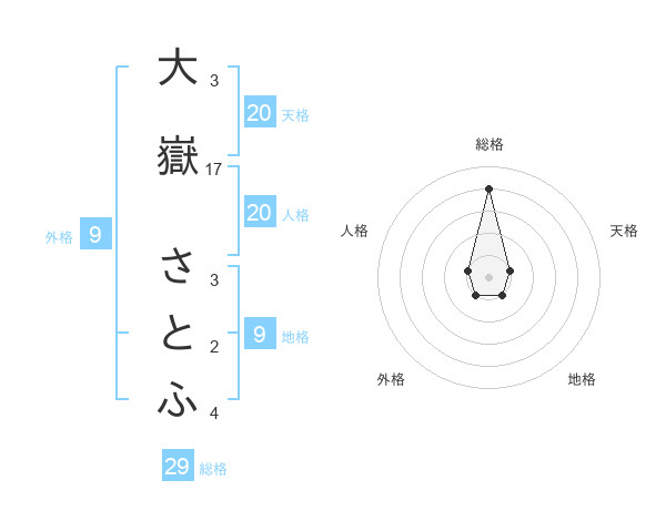 大嶽 さとふさんを姓名の画数から五運を鑑定