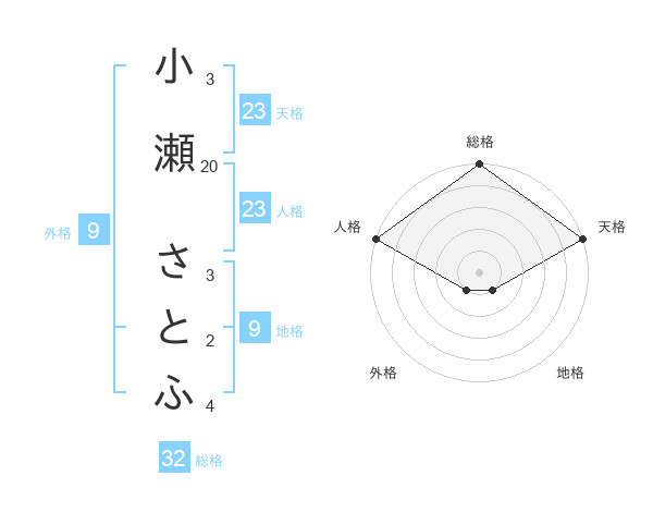 小瀬 さとふさんを姓名の画数から五運を鑑定