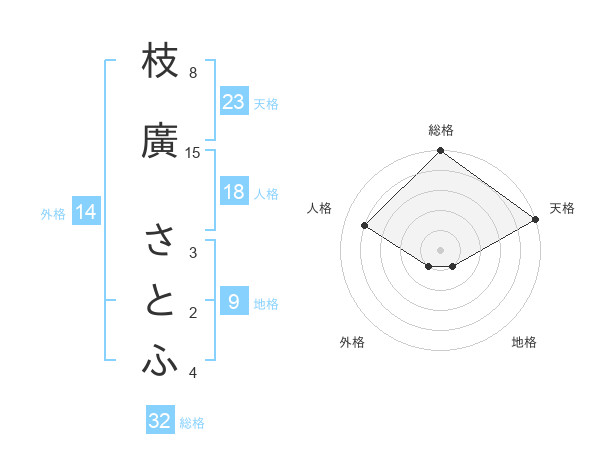 枝廣 さとふさんの天格は23画の5点!
