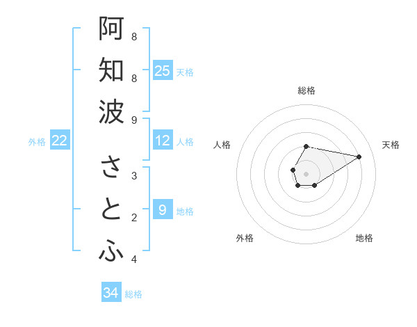 阿知波 さとふさんを姓名の画数から五運を鑑定