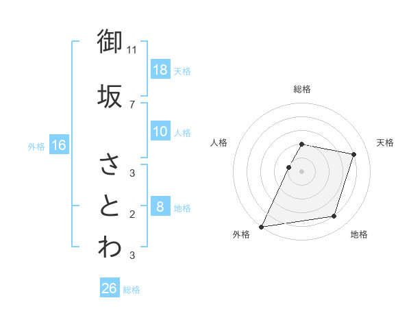 御坂 さとわさんを姓名の画数から五運を鑑定