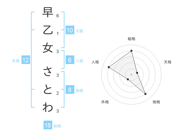早乙女 さとわさんを姓名の画数から五運を鑑定