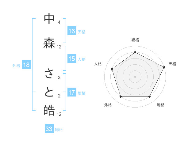 中森 さと皓さんの総格は33画の4点!