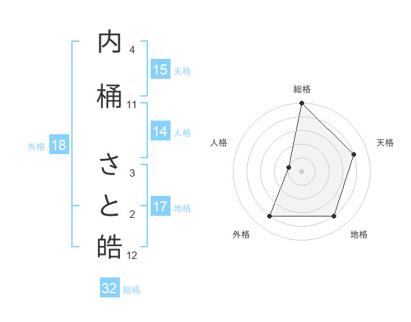 内桶 さと皓さんを姓名の画数から五運を鑑定