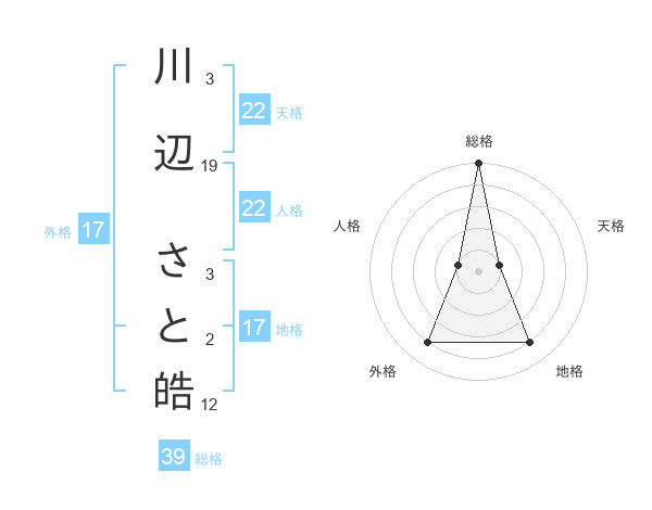 川辺 さと皓さんを姓名の画数から五運を鑑定