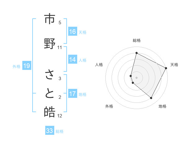 市野 さと皓さんを姓名の画数から五運を鑑定