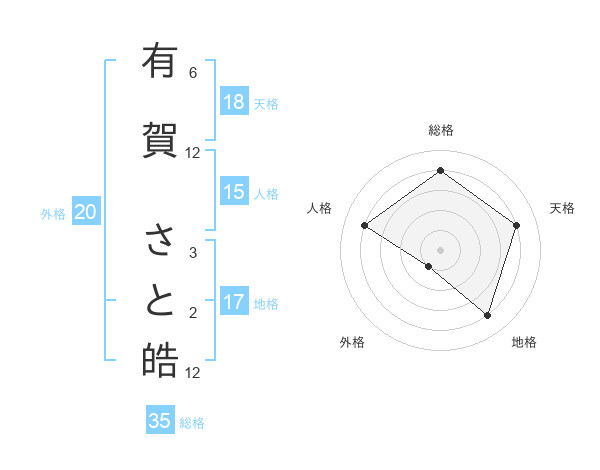 有賀 さと皓さんを姓名の画数から五運を鑑定