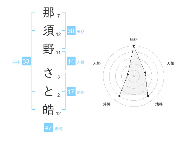 那須野 さと皓さんを姓名の画数から五運を鑑定