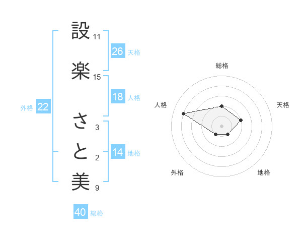 設楽 さと美さんの総格は40画の2点!