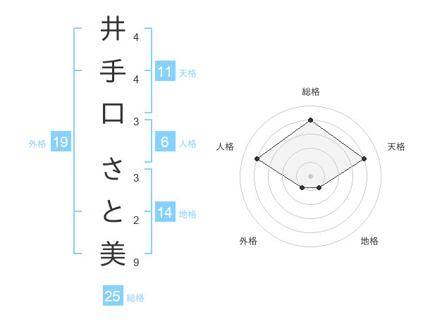 井手口 さと美さんを姓名の画数から五運を鑑定