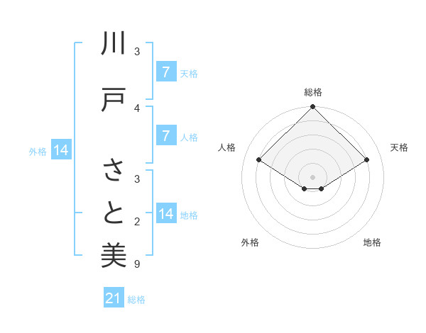 川戸 さと美さんを姓名の画数から五運を鑑定