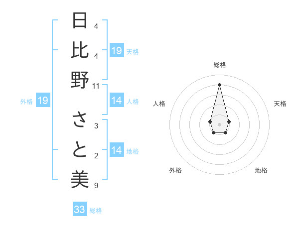 日比野 さと美さんを姓名の画数から五運を鑑定