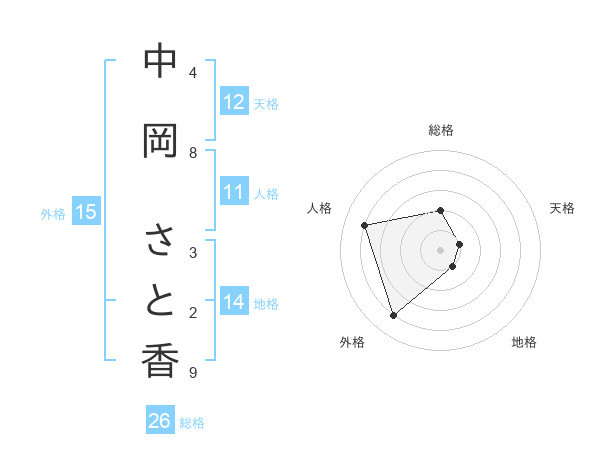 中岡 さと香さんを姓名の画数から五運を鑑定