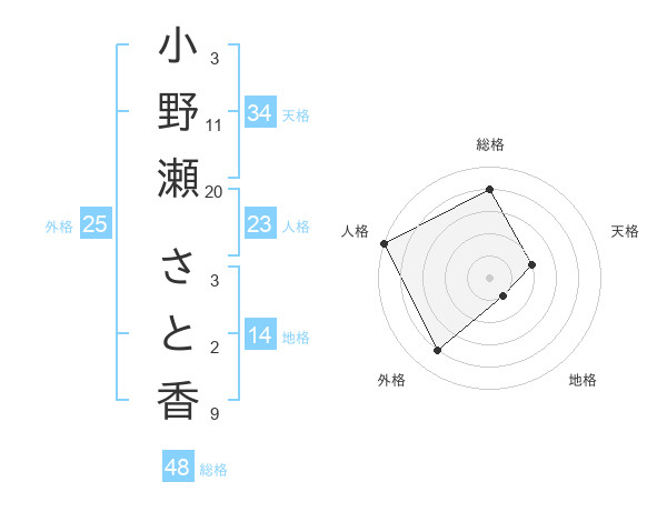 小野瀬 さと香さんを姓名の画数から五運を鑑定