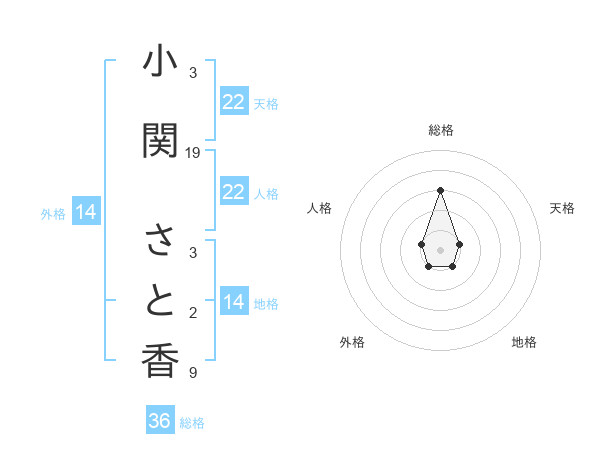 小関 さと香さんの天格は22画の1点!