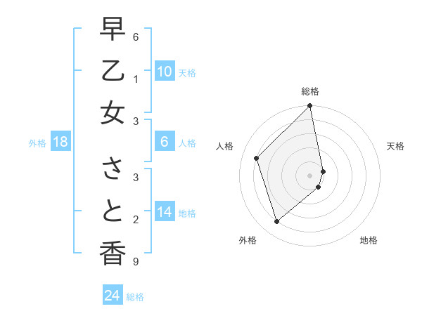 早乙女 さと香さんの総格は24画の5点!