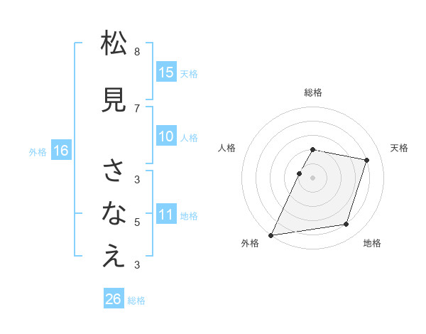 松見 さなえさんの天格は15画の4点!