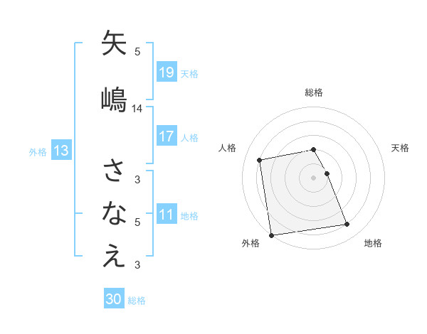 矢嶋 さなえさんを姓名の画数から五運を鑑定