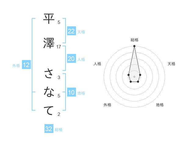 平澤 さなてさんの総格は32画の5点!