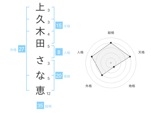 上久木田 さな恵さんを姓名の画数から五運を鑑定