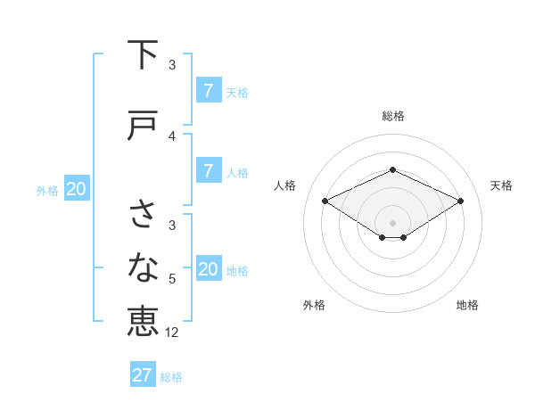 下戸 さな恵さんを姓名の画数から五運を鑑定